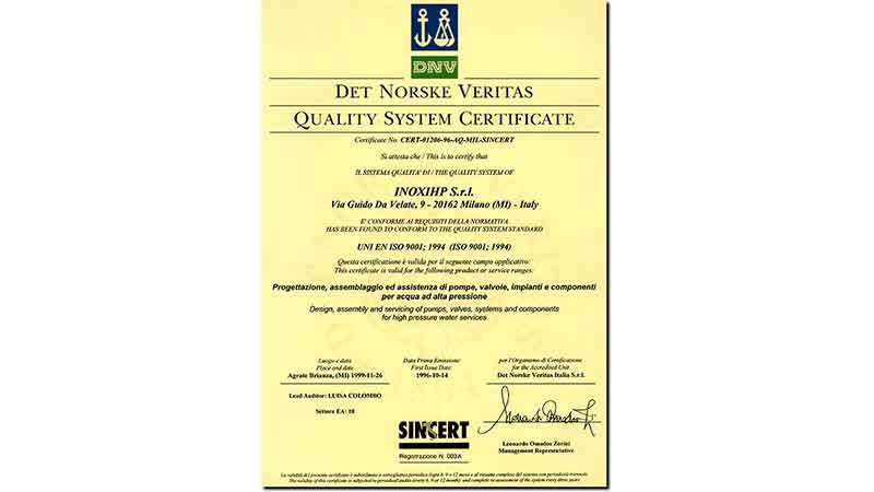 1996年INOXIHP公司就已取得ISO9001質(zhì)量認(rèn)證證書(shū) |